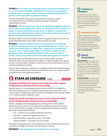 în legătură cu proiectul de învățare prin servicii în folosul comunității. Cereți-le să discute desenul cu un/o coleg(ă) sau cu un membru al familiei, împărtășind ce le-a plăcut și reflectând asupra întregii experiențe.