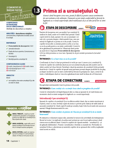 C ETAPA DE CONECTARE 10 MINUTE INSTRUCȚIUNE Recapitulați sentimentele Anei în prima zi de școală.