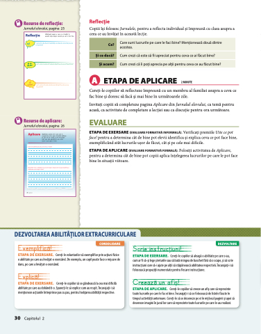 ETAPA DE APLICARE (EVALUARE FORMATIVĂ FORMALĂ). Folosiți activitatea de Aplicare, pentru a determina cât de bine pot copiii aplica înțelegerea lucrurilor pe care le pot face bine în situații viitoare.