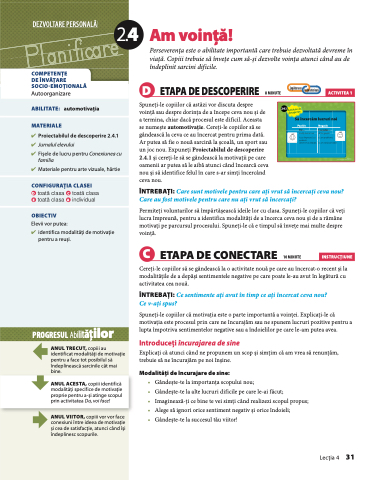 ANUL VIITOR, copiii vor vor face conexiuni între ideea de motivaţie și cea de satisfacţie, atunci când își îndeplinesc scopurile.