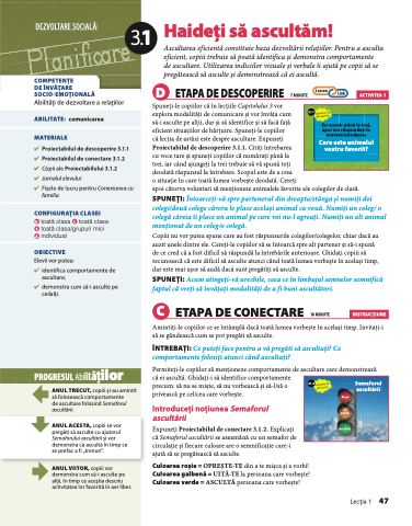 Expuneți Proiectabilul de conectare 3.1.2. Explicați că Semaforul ascultării se aseamănă cu un semafor de circulație și fiecare culoare are o semnificație care-i ajută să se pregătească să asculte.