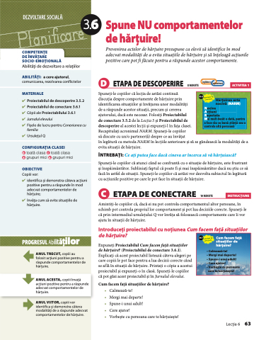 în legătură cu metoda NARM în lecțiile anterioare și să se gândească la modalități de a evita situații de hărțuire.
