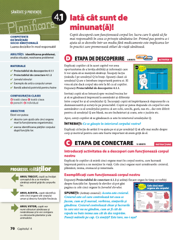 oportunitatea de a învăța abilități și informații care îi vor ajuta să se mențină sănătoși. Începeți lecția ținându-l pe ursulețul Q în brațe. Spuneți clasei că ursulețul Q are o întrebare importantă pentru ei. El vrea să știe dacă corpul său este la fel cu al copiilor. Expuneți Proiectabilul de descoperire 4.1.1.