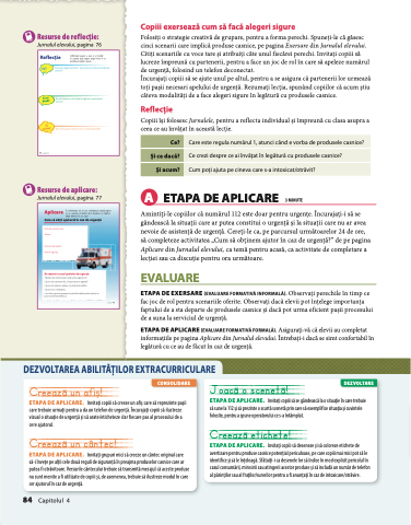 ETAPA DE APLICARE (EVALUARE FORMATIVĂ FORMALĂ). Asigurați-vă că elevii au completat informațiile pe pagina Aplicare din Jurnalul elevului. Întrebați-i dacă se simt confortabil în legătură cu ce au de făcut în caz de urgență.