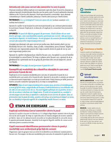 SPUNEȚI: Ne pasă de diferite grupuri de persoane. Unele dintre ele ne sunt foarte aproape, cum sunt familiile noastre, prietenii sau vecinii. Alte persoane sunt foarte departe, în toată lumea. Aceste grupuri de oameni formează diferite cercuri ale oamenilor importanți pentru noi.
